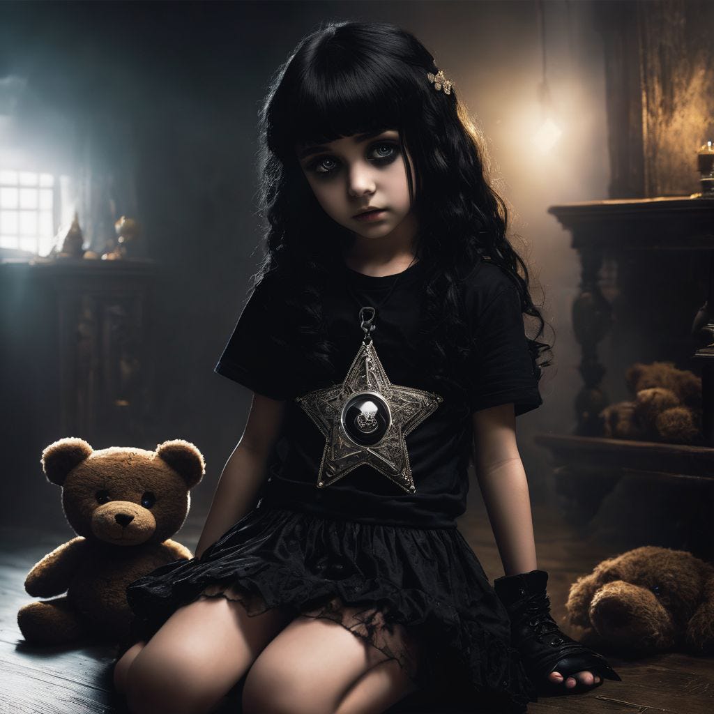 She wore a tight black T-shirt with a print of a large silver star in the center of her chest, and a smaller version on her right capped sleeve. A black mini skirt and 16 up Doc Martins completed the ensemble. Her long, drab curls looking like they had been dyed one too many times flowed just past her shoulders and covered most of her face. Legs smudged with dirt and bruises, she looked like she hadn't seen water in a while. A dirty, dark gray teddy bear at least half her size was been dragged against its will beside her. That poor filthy thing was missing an eye; stuffing oozing out and falling to the ground as she moved. Oh and that look of such dejection on her face! It was heartbreaking to witness. She wouldn't look at me, but tentatively sat down next to me on the shore.